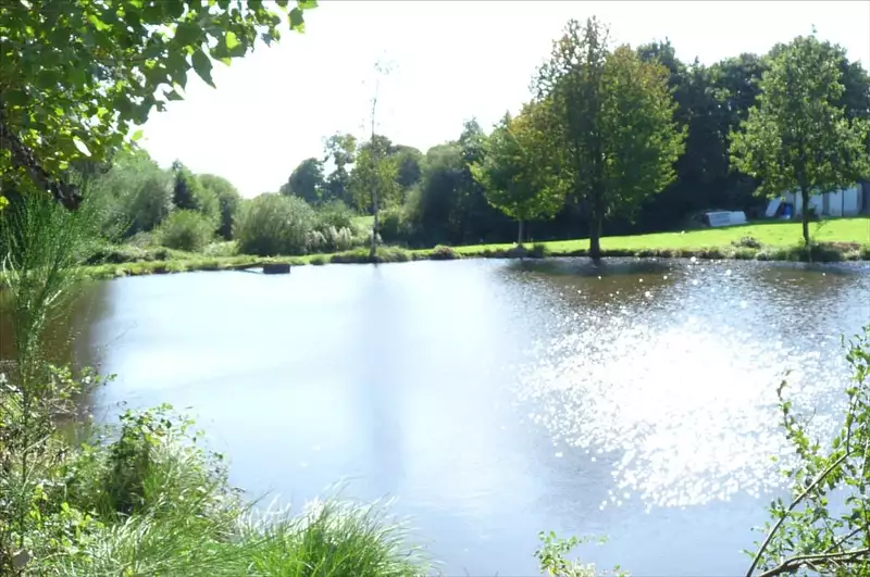Deux étangs poissonneux sur un terrain de plus d'un hectare avec un petit pré, des arbres et des accessoires permettant de profiter du site et de sa tranquillité et de maintenir les lieux en bon état (tracteur, débroussailleuse, caravane, panneau solaire, abri pour matériel, etc)