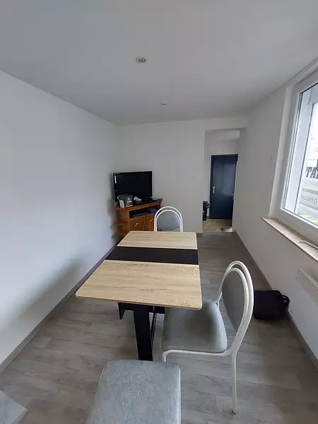 2) en extension de la maison, un studio, en plein pied, composé d'un coin cuisine, un espace de vie, une salle de bain, un WC, une buanderie et une chambre individuelle donnant sur un espace vert, à la disposition du locataire.