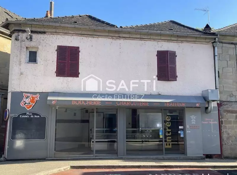 Rez-de-chaussée : Ancien commerce de boucherie, offrant une belle surface avec grande vitrine donnant sur rue passante. Il dispose de plusieurs chambres froides encore en place, d’un espace arrière avec un WC. Cet espace peut être repensé pour accueillir une nouvelle activité commerciale, une profession libérale ou un projet de restauration rapide, par exemple.