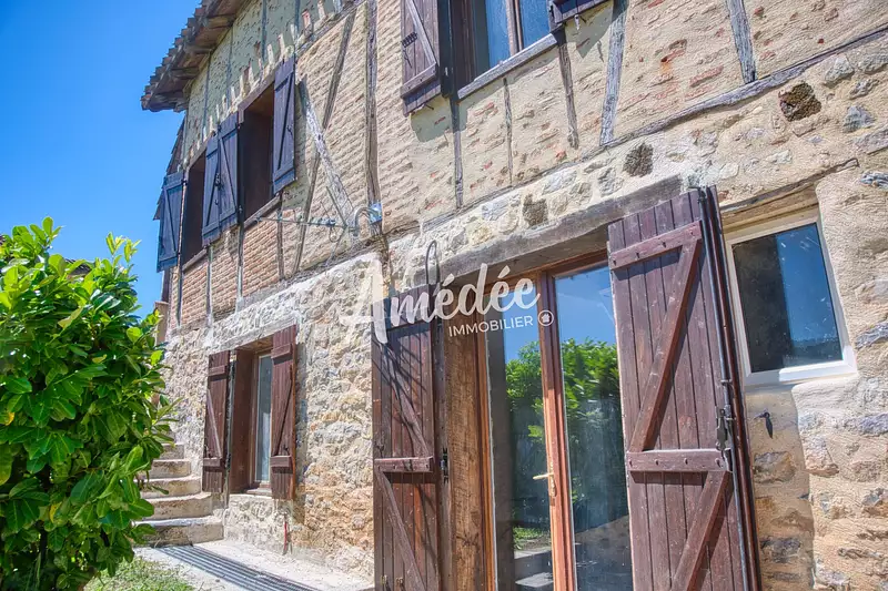 Amédée Immobilier vous propose à la vente à Saint-Céré (46400) une maison ancienne pleine de charme, située dans une petite rue calme, à proximité du centre-ville. Rénovée avec goût, elle allie le cachet de l'ancien (pierre et briques apparentes) à une organisation fonctionnelle en deux logements indépendants, chacun disposant de son entrée séparée. Le premier logement de type 3, accessible de plain-pied, se développe en triplex : ce logement bénéficie d'un accès direct à une terrasse et un terrain privatif de plus de 100 m². Le second logement de type 2 est accessible depuis un escalier indépendant. Plusieurs projets s'offrent à vous : résidence principale avec location du second logement, investissement locatif avec deux lots à louer, regroupement possible des deux habitations pour créer une seule maison de famille.
