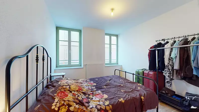 Le duplex au 2ème étage de 61,90 m² offre une entrée avec dégagement, une grande cuisine avec balcon, un salon, une salle de bain, un WC séparé et une belle chambre à l'étage. Ce logement est loué depuis décembre 2016 pour un loyer conventionné ANAH à 466 € + 180 € de charges (convention échue).