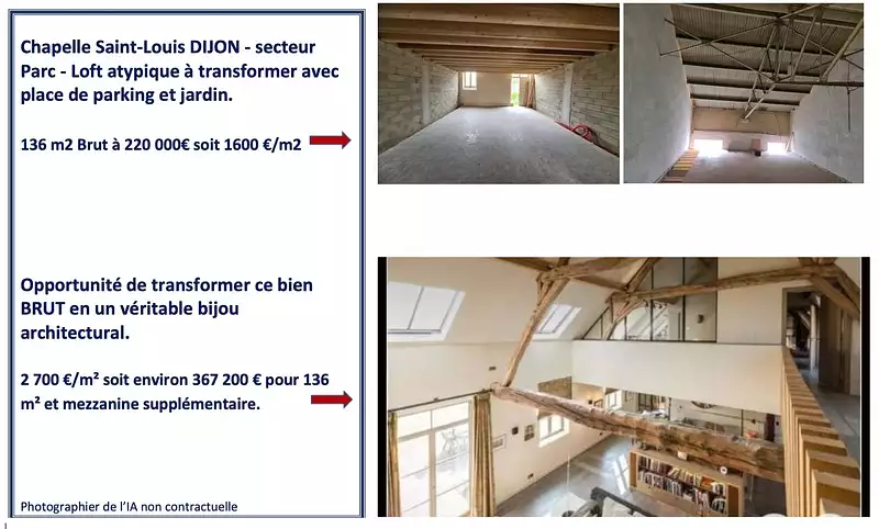 2 700 €/m² soit environ 367 200 € pour 136 m² et mezzanine supplémentaire.