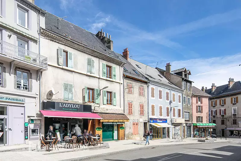Investisseurs : La Mure centre, ensemble immobilier avec locataires en place comprenant, les murs d'un commerce ( en excercice ) pour une surface de 73,71 m² ( Restaurant licence IV ) caves combles et terrain sur l'arrière en rez-de-chaussée loué 973 eurosuros mensuel . Au 1er étage un appartement de type T2 pour une surface de 32,79 m² pouvant être loué 350 eurosuros mensuel. Au 2ème étage un appartement de type T3 pour une surface de 45,64 m² pouvant être loué 400 eurosuros mensuel libre de toutes occupations pour l'instant. Centre dynamique, embelli par la commune ( Voirie, place commençante etc....)à seulement 45 minutes de GRENOBLE, lacs et stations de ski a proximité.
