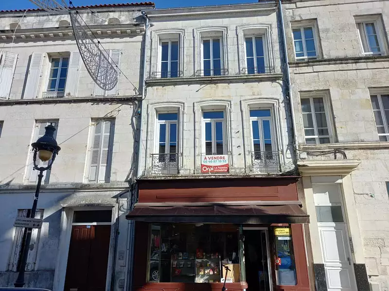 ROCHEFORT, en hyper centre-ville, dans une rue commerçante, immeuble de 170 m² composé en RDC d'un local commercial et d'un appartement en duplex à rafraichir.