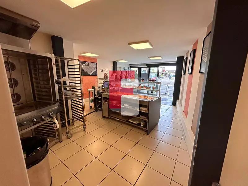 Dans une rue commerçante, retrouvez un beau local de 77m2 à vendre, comprenant un laboratoire de 15m2, une surface magasin de 27m2 et un stockage de 35m2 avec également un wc. Au dessus, un appartement T4 d'une superficie de 95m2 est vendu loué, avec un loyer estimé à 630EUR + 50EUR de charges.