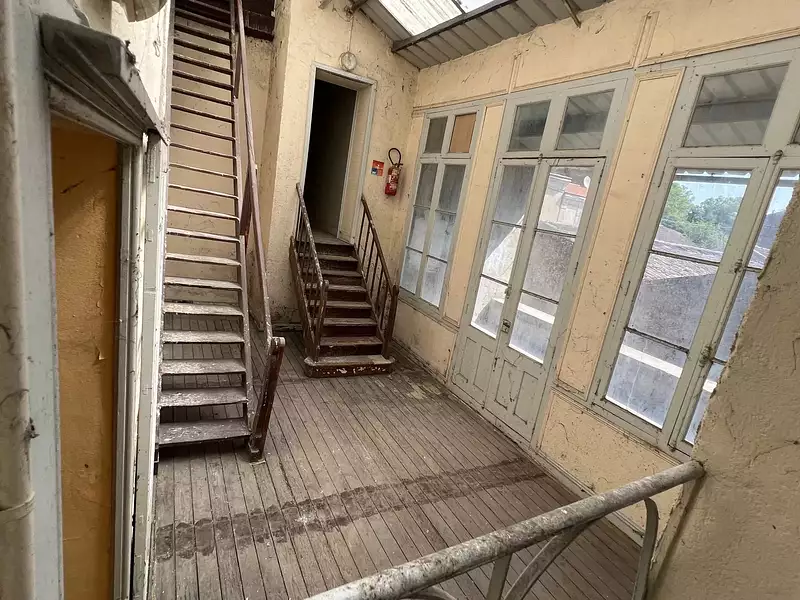 Immeuble dans le centre d'Etauliers à rénover complétement sauf toiture comprenant en rez-de-chaussée : une grande pièce de réception (salle de restauration), une autre pièce (bar), à l'étage un grand plateau de plus de 70 m² avec terrasse attenante de plus de 30m² en partie fermée.