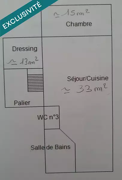 De beaux volumes (environ pour ces pièces:salle principale 53 m2,Salle arrière plus de 60 m2,cuisine 13 m2, séjour/cuisine à l'étage :33 m2,bureau office de chambre 13m2