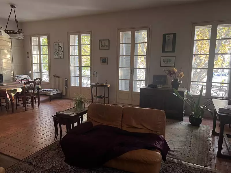 Au premier étage, venez découvrir les magnifiques volumes de cet appartement de 180m². Le séjour offre une double exposition, sud et ouest avec vue sur une place arborée.