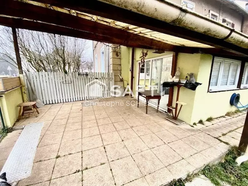 L'extérieur de la propriété présente des aménagements pratiques tels qu'une terrasse, une véranda, une cave et un garage pouvant accueillir deux véhicules. Ces espaces extérieurs offrent des possibilités d'agrément et de stockage appréciables pour les occupants des trois appartements indépendants de l'immeuble.