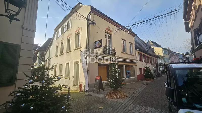 A vendre en exclusivité à Masevaux-Niederbruck Idéalement situé au coeur de Masevaux-Niederbruck dans la rue piétonne la plus prisée, cet immeuble de caractère développe une surface totale de 200 m² et offre un cadre rare à la fois raffiné et fonctionnel. Le rez-de-chaussée accueille un local commercial de 70 m² bénéficiant de belles vitrines apportant visibilité et élégance. Cet espace représente une opportunité idéale pour une activité professionnelle en centre-ville. A l'étage, un duplex de 127 m² habitables séduit par son charme intemporel et ses volumes généreux. Hauteur sous plafond de 2,90 m, rosaces et moulures d'origine confèrent à l'ensemble un cachet unique. Le premier niveau se compose d'une entrée spacieuse, d'un salon avec cheminée à insert, d'un séjour lumineux, d'une cuisine individuelle équipée ainsi que d'une salle de bain avec toilettes. L'étage propose trois chambres et une suite parentale récente avec dressing, salle d'eau et toilettes. L'immeuble bénéficie d'équipements de qualité : fenêtres en double vitrage, chaudière à granulés installée en 2022, et se complète par un garage, deux espaces de stockage et une cave. Masevaux-Niederbruck, au coeur des vallées vosgiennes, conjugue dynamisme et qualité de vie. Ses commerces, ses services, ses écoles et son environnement naturel en font une adresse recherchée et agréable à vivre. C'est un véritable coup de coeur pour celles et ceux qui recherchent un immeuble alliant charme, potentiel et situation exceptionnelle au coeur de Masevaux-Niederbruck.