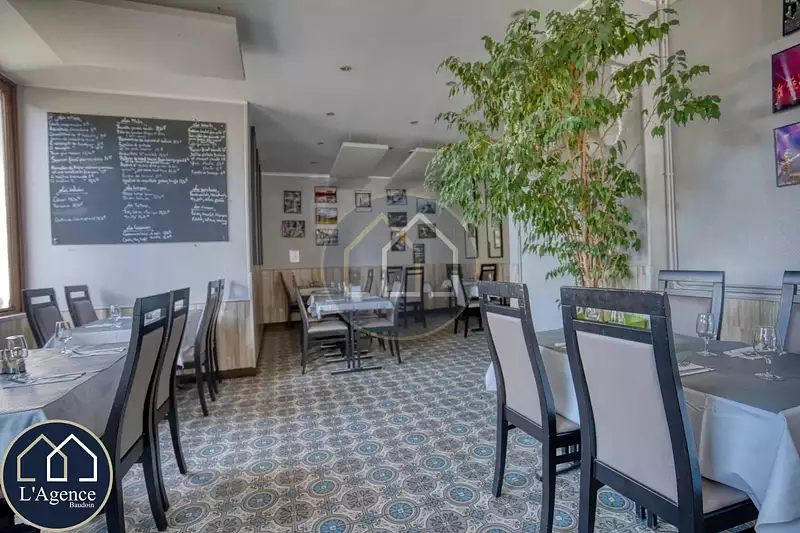 Restaurant de 140 m² comprenant un bar, une salle, une cuisine, des caves et une petite maisonnette de deux pièces.