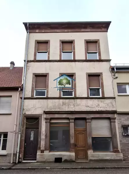 Immeuble de rapport à rénover à BITCHE de 219,40 m² sur 3 étages (10 pièces) avec 3 appartements + au rez-de-chaussée un local commercial d'environ 52 m² et un petit jardin d'environ 90 m², parcelle de 1,58 ares.