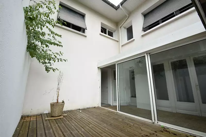 Un appartement quatre pièces pouvant être loué 550 € et composé d'une cuisine, salon et séjour, deux chambres, une salle d'eau, WC, une véranda et une cour intérieure.