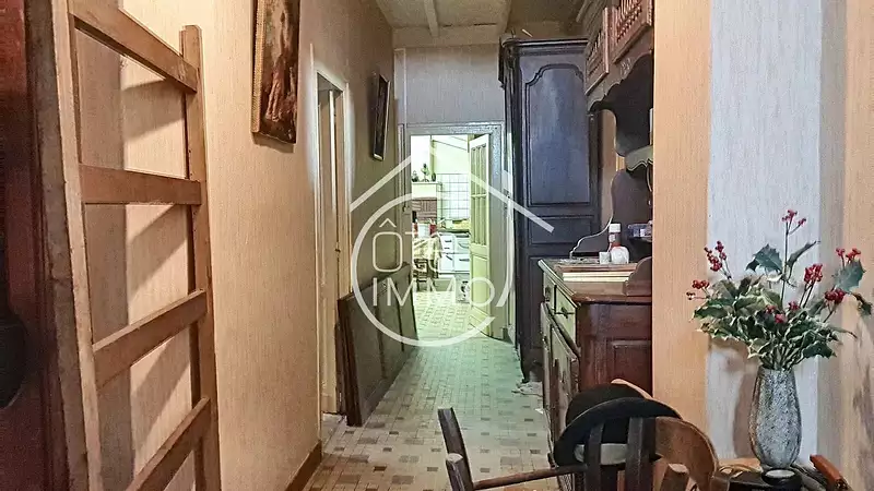 L'habitation bénéficie de 2 entrées indépendantes, dans une petite rue adjacente, qui distribuent chacune en rez-de-chaussée 2 parties communicantes qui s'articulent autour d'un patio 29 m² à l'arrière, et d'un petit salon desservie par les 2 entrées.