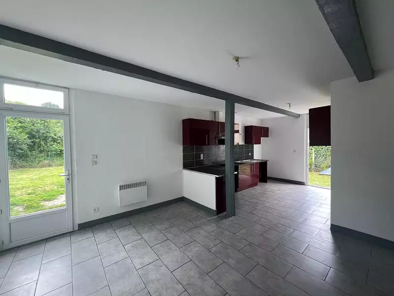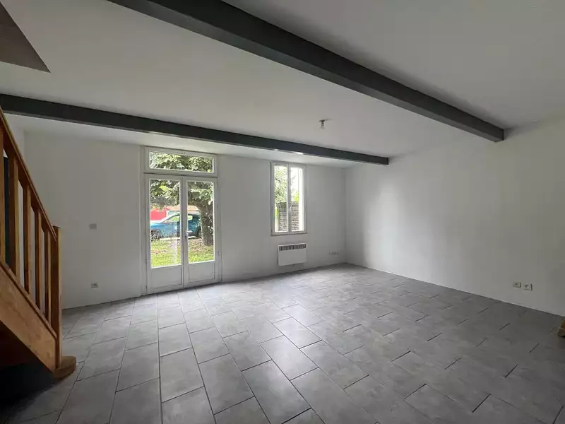 T 3 d'environ 86 m² comprenant séjour, cuisine équipée, salle d'eau, wc, 2 chambres et jardin privatif avec stationnement. Actuellement loué 640 €/mois - Classe énergie D.