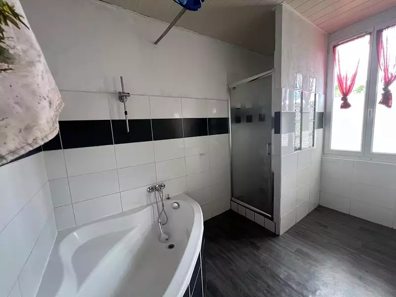 T5 d'environ 158 m² comprenant séjour, cuisine équipée, cellier, salle de bain, 2 wc, 4 chambres et jardin privatif avec stationnement. Actuellement loué 781 €/mois - Classe énergie D.