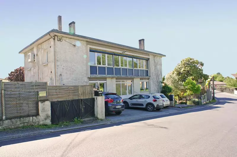A l'étage, vous trouverez un plateau de bureau d'une surface d'environ 150m². Le plateau est actuellement libre, mais était loué environ 1300€/mois.