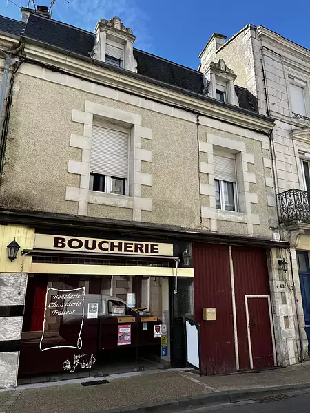 Il offre un local commercial aux normes de 150m2 avec activité de boucherie. Magasin, bureau, réserves, chambres froides, laboratoire, plonge. Une cour intérieure et une dépendance de 33m2 avec grenier.