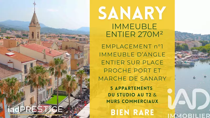 iad France - Julie Verriere vous propose: RARE, IMMEUBLE BOURGEOIS ENTIER sur une place recherchée à proximité immédiate du port de Sanary et des stationnements.