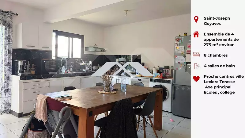 MAXImmo vous propose cet ensemble immobilier à Saint-Joseph, situé dans le secteur calme de Goyaves, à proximité du centre-ville et du Leclerc Terrasse, cet ensemble se compose de 4 appartements T3 d'environ 70 m², actuellement tous loués.