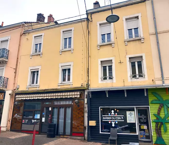Idéal investisseurs ! Immeuble complet élevé sur caves à usage mixte, parfaitement situé au cœur du centre-ville de Montceau-les-Mines (71), à 15 min de la gare TGV.