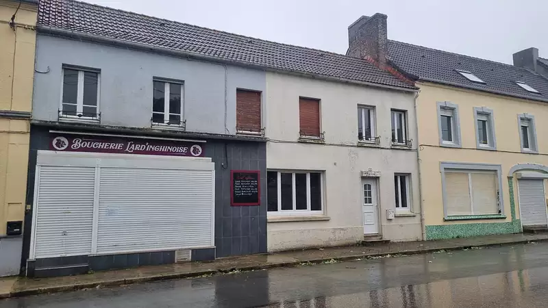 HARDINGHEN, centre village, immeuble de 394 m2 de surface au sol quasiment totalement de plain-pied et actuellement compartimentée avec grand carport et cour privative accessible en voiture (plusieurs stationnements possibles), le tout sur 650 m2