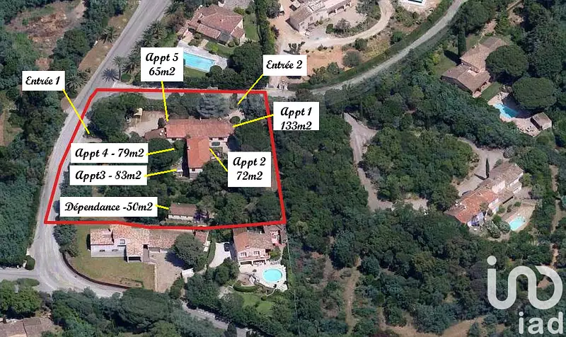 Il ne s’agit pas d’une simple maison… mais d’une BATISSE en “T” de 482 m², avec DÉPENDANCE, répartie en 6 APPARTEMENTS INDÉPENDANTS (du 2 au 4 pièces – 50 à 133 m²).