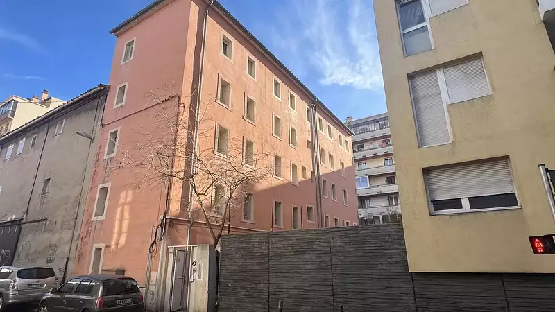 L'immeuble est en face d'une école primaire dans une rue résidentielle et calme.