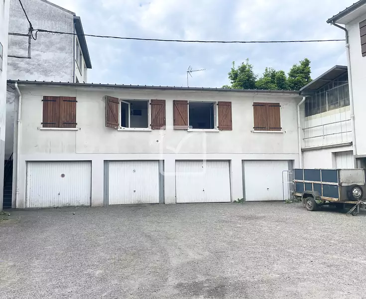 Je vous propose ce petit immeuble de rapport composé d’un appartement T3 de 55 m2 (loué 545 € + 5€ charges), 4 garages de 14 m2 loués en garde-meuble (60 € sans charge), 1compteur pour 4 garages et 1 dépôt de 80 m2 loué en garde-meuble sur 2 niveaux (180 sans charge).