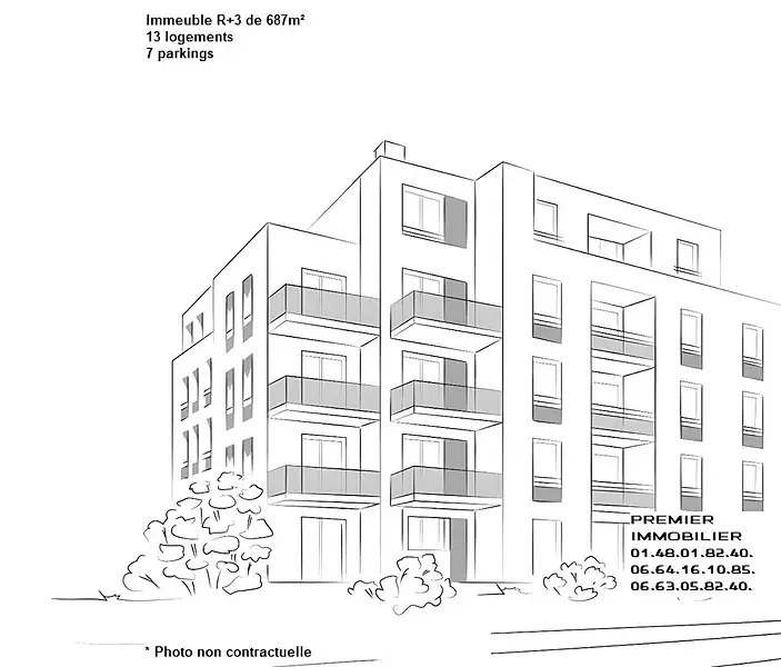 Ivry Sur Seine, Un immeuble d'habitation de 687m² sur un terrain de 520m², R+3 composé de 13 logement : 4 deux pièces, 9 trois pièces, 7 parkings voiture, parkings vélo. Loyer potentiel : 206 000 euros/an. idéal investisseur. Dossier sur demande. A saisir! Contact : 06.64.16.10.85. (6.00 % honoraires TTC à la charge de l'acquéreur.)