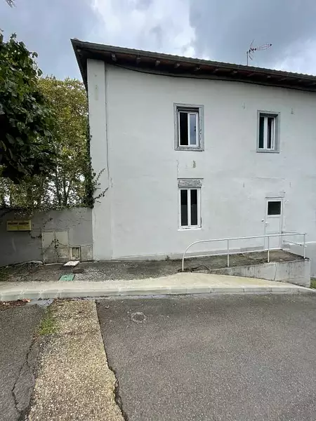 Immeuble mitoyen comprenant 2 appartements, un appartement rénové de type T3 loué 450€ par mois, et un appartement T2 avec jardin.