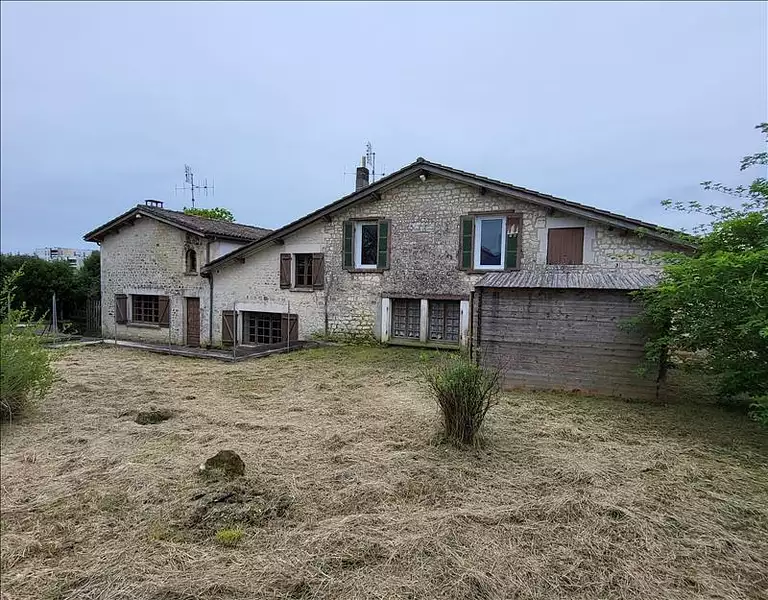 Investissement locatif à JONZAC en Charente Maritime (17), ensemble immobilier en pierres composé de 3 logements vides d'env. 66 m², 142 m² et 180 m² habitables, raccordés au tout à l'égout. Dépendance de 32m², jardin et stationnements privatifs. Travaux à prévoir pour remise sur le marché locatif des logements.
