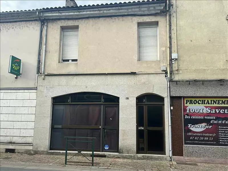 Centre bourg, proximité stationnment public, Immeuble en pierre comprenant un local commercial en rez de chaussée d'environ 36m² avec wc. A l'étage un appartement avec accès indépendant offrant 50m² avec 2 chambres. L'ensemble est édifié sur cave, compteurs eau et élec indépendants. Les deux lots sont vendus libres d'occupation.