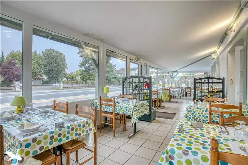 Sur un axe passant, non loin des commodités, murs et fond de commerce à usage d'hôtel restaurant avec appartement indépendant, huit chambres louables à la nuité avec entrée indépendante, quatre garages, parking, terrain d'environ 1700m².