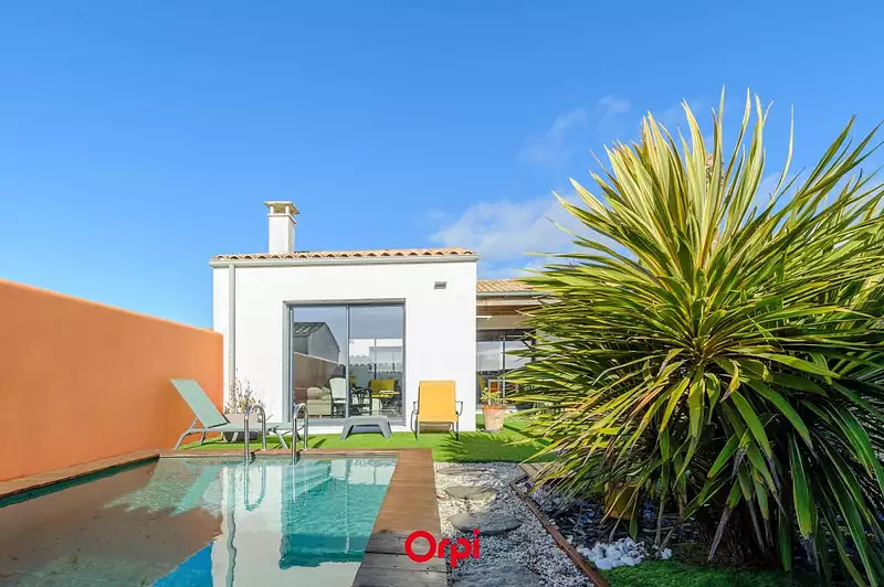 Elle se compose d'une entrée avec placard, d'une cuisine ouverte sur la salle à manger et d'un salon cocooning donnant directement sur la terrasse et la piscine chauffée. Patio central. 3 chambres et une salle d'eau moderne complètent ce bien.