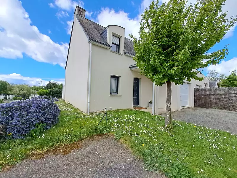 BADEN. Le bourg et les commodités à pied de cette maison fonctionnelle et soignée d'environ 100m2 hab., tout en étant au calme. Offrant au rdc une agréable pièce de vie donnant sur une terrasse au sud, cuisine ouverte aménagée et équipée, une belle chambre avec placard, salle douche. A l'étage 3 chambres, grande salle de bains. Jardin clos d'environ 260m2, garage avec porte motorisée.