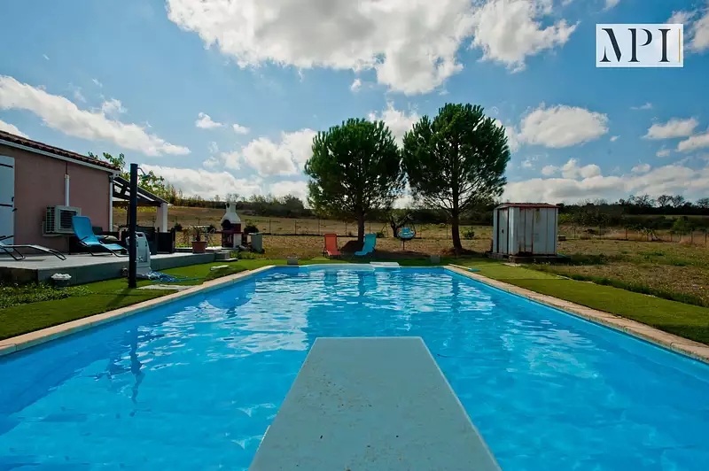 Très belle et spacieuse maison, située à seulement 15 minutes dans l’est de Carcassonne. Grand sejour/cuisine 4 chambres 2 salle de douche 2 WC Très grand garage Plusieurs terrasses Piscine 5*10 mètres, Jardin clos et clôturé de 2 500 m2 sans voisins sur deux côtés. Performance énergétique et climatique: Consommation d'energie primaire - 86 kWh/m2/an (B) Émissions de gaz - 2 kg CO2/m2/an (A)