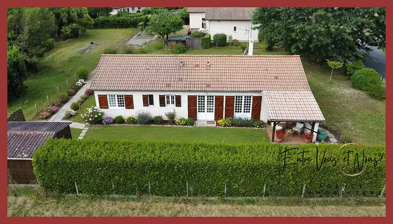 L'agence Immobilière ENTRE VOUS ET NOUS présente en exclusivité dans un quartier calme aux portes de Bazas, une maison individuelle plain-pied de 100m² sur un terrain clôturé de 1000m² et un garage de 17m².