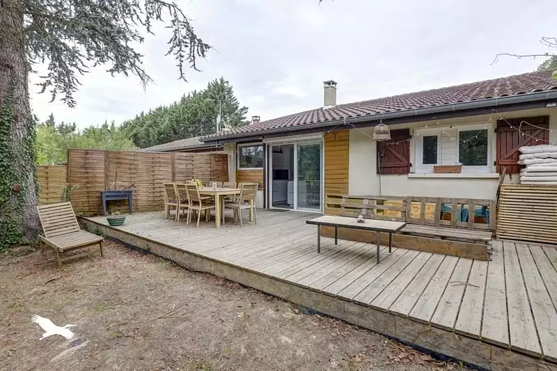 Bourg Saint Bernard, à quelques minutes de Verfeil, maison entièrement rénovée de plain-pied 100 m² de 1995. Installation chauffage au sol, cuisine ouverte sur le salon de 50 m². Un accès direct sur la terrasse, charmant jardin arboré de 2914 m². Deux chambres, un bureau. Parking et grand garage de 60 m².
