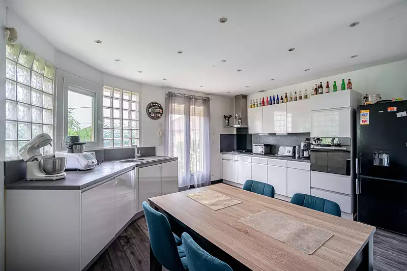 Implantée sur une parcelle paysagée de 760m2, cette agréable maison dispose d'une d'entrée ouvrant sur une pièce de vie lumineuse et d'une cuisine équipée, le tout ouvrant sur la terrasse exposée Sud et le jardin clos.