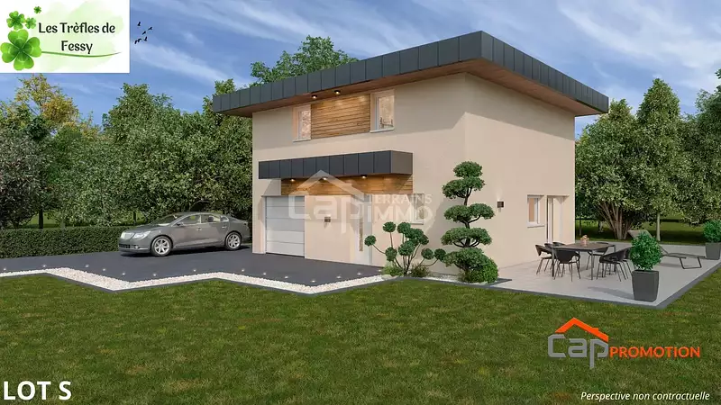 Maison moderne avec son bandeau design implantée sur une parcelle de 748m² qui vous permettra de profitez des beaux jours.