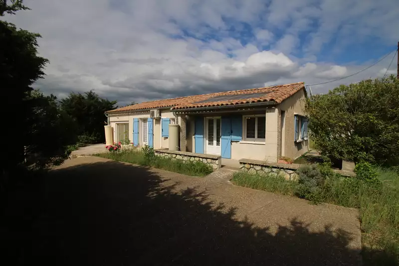 Exclusivité. Dans un quartier résidentiel sur les hauteurs au calme et proche du centre, villa de plain-pied avec un cabanon (relié aux réseaux). Belle pièce à vivre ensoleillée, trois chambres, bureau, cuisine US. Climatisation en état neuf, huisseries PVC, panneaux photovoltaïques (rapport de 1130 euros/an), electricité neuve. Travaux à prévoir: cuisine, sols, peintures, salles d'eau. A l'extérieur un patio intime, parkings.