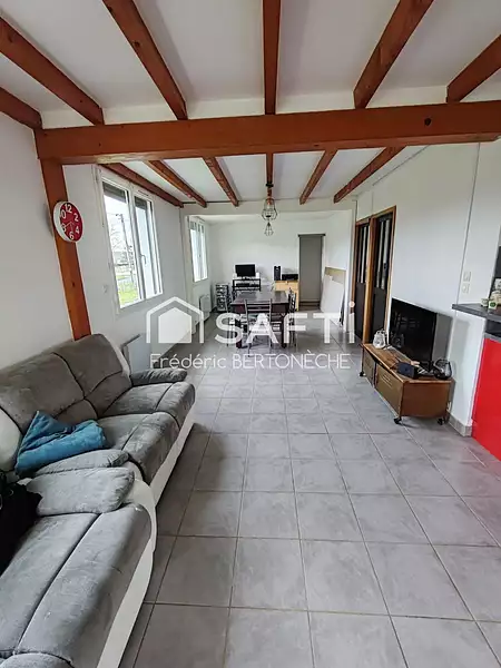 Dès que l'on pénètre à l'intérieur, on découvre une maison de plain-pied d'une superficie de 100 m², comprenant 4 pièces au total, dont 3 chambres spacieuses. La disposition fonctionnelle des pièces offre un espace de vie agréable et lumineux. À la fois chaleureux et fonctionnel, cet intérieur présente un cadre propice à la vie familiale, dans un environnement calme et serein, idéal pour créer de nombreux souvenirs inoubliables en famille.