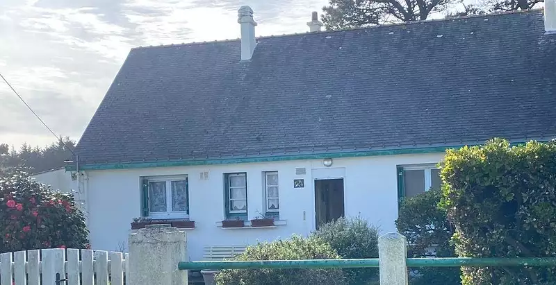 A Vendre à Groix, maison vie au rdc avec potentiel d'aménagement sur 100m2 et d'extension avec 1000m2 de jardin (Zone Ub), comprenant: RDC (70m2): entrée, WC, salle d'eau, séjour/salon, cuisine, 2 chambres. Etage: grenier (30m2 env.). Chauffage fuel, garage, atelier/buanderie/chaufferie, abris de jardin. Classe énergie: F 290 kWh/m2/an