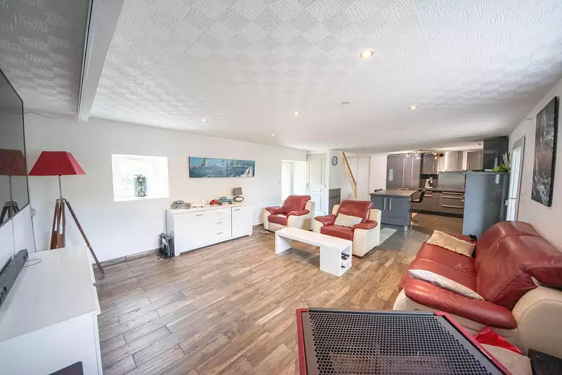 Un atout majeur : le grand garage de plus de 50m² accolé à la maison, déjà équipé d'une cuisine, offre la possibilité de créer facilement une chambre supplémentaire ou un duplex indépendant dans le grenier au dessus.
