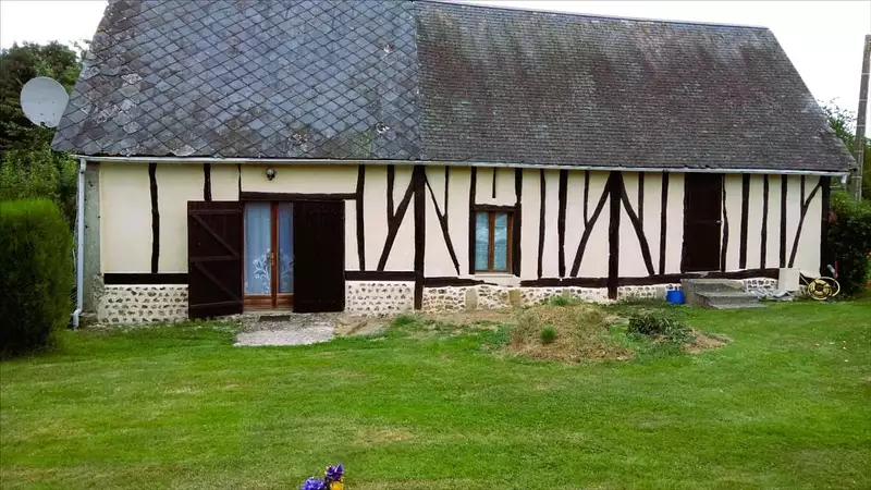 1/ Chalet en bois comprenant séjour avec poêle à bois, salle à manger, une chambre, salle de douche, wc2/ Grange en colombage comprenant cuisine, salle de douche avec wc, bureau3/ Garage en bois,le tout sur un terrain plat de 5086 m², en campagne au calme. Logement à consommation énergétique excessive Les informations sur les risques auxquels ce bien est exposé sont disponibles sur le site Géorisques : www. georisques. gouv. fr