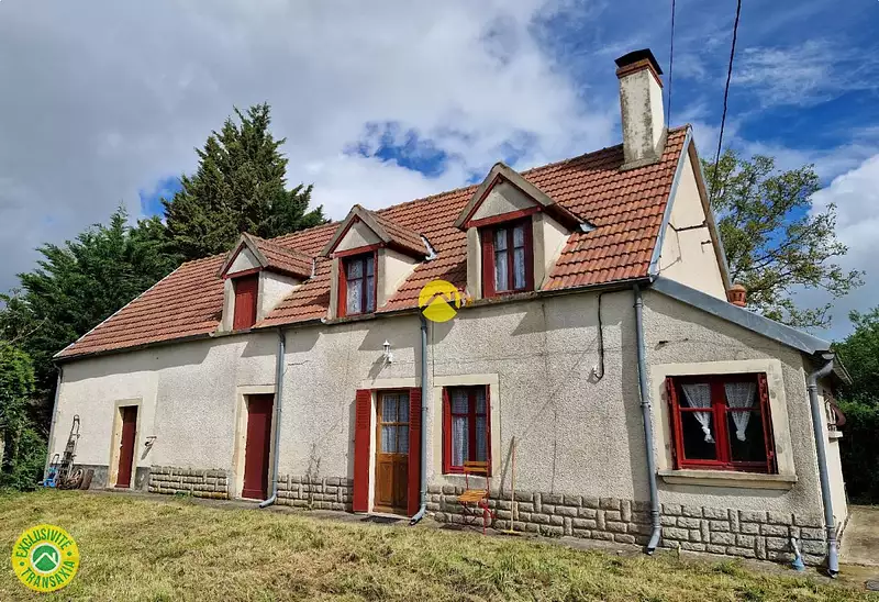 Transaxia LA GUERCHE SUR L'AUBOIS, LAUDE Lydia (EI), vous propose à 2 mn de BLET, une longère de 100 m² environ avec 3082 M² de terrain, au rdc un grand séjour avec cheminée ouverte, cuisine, salle d'eau/wc, un escalier vous amène à l'étage un couloir desservant 3 chambres avec salle de bain, 2 dépendances attenantes à la maison (granges) sur un terrain arboré et clos de 3082 m² avec un puits.Chauffage central au gaz (citerne), menuiserie simple vitrage bois, assainissement : fosse septique non conforme