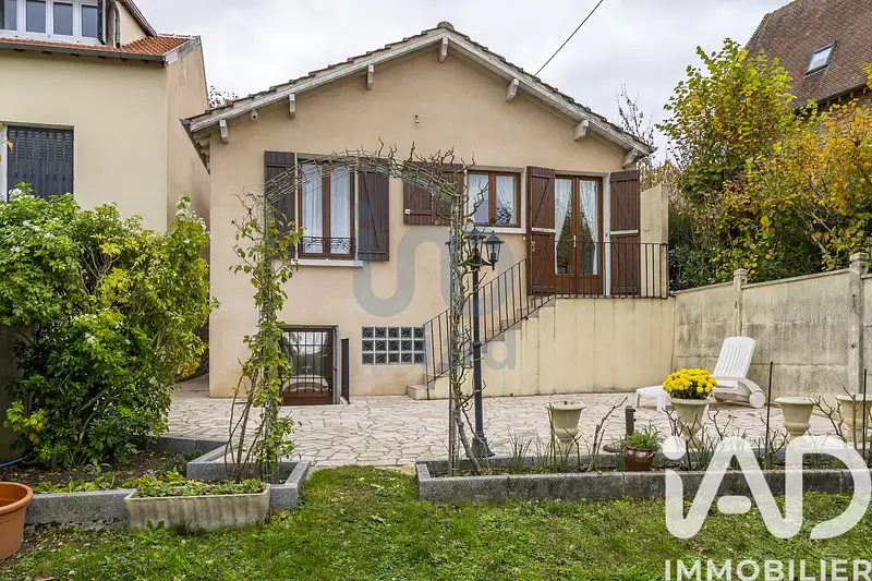 iad France - Franck Schiavi vous propose: Pavillon de type 5 pièces édifié sur sous-sol total comprenant : entrée, séjour double, cuisine aménagée et équipée, 3 chambres dont une en rez-de-chaussée, salle d'eau, salle de bains, 2 WC, buanderie, garage et jardin.
