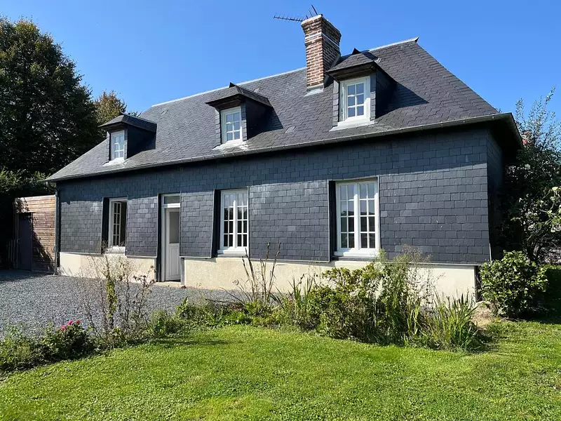 entre PONT L'EVEQUE, CORMEILLES et LISIEUX, jolie maison ancienne de 5 pièces, comprenant : séjour salon équipé d'un poêle à granulés, grande cuisine, arrière cuisine buanderie, une chambre au rez-de-chaussée, salle de bains, à l'étage, dégagement, deux chambres, salle d'eau. remises, jardin autour de 714 m²