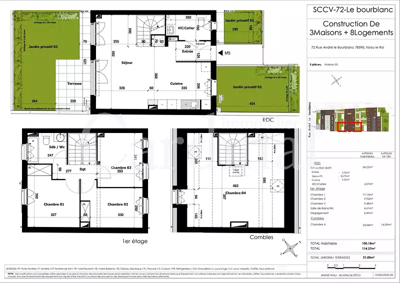 Les maisons, pensées pour la vie de famille, offrent un cadre intime et lumineux avec un jardin privatif, un espace de vie spacieux au rez-de-chaussée, trois chambres à l’étage, et la possibilité d’aménager une quatrième chambre dans les combles.